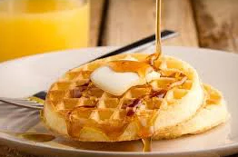 ארבעים יחידות של וופל בלגי מוכן לאכילה עם רטבים.